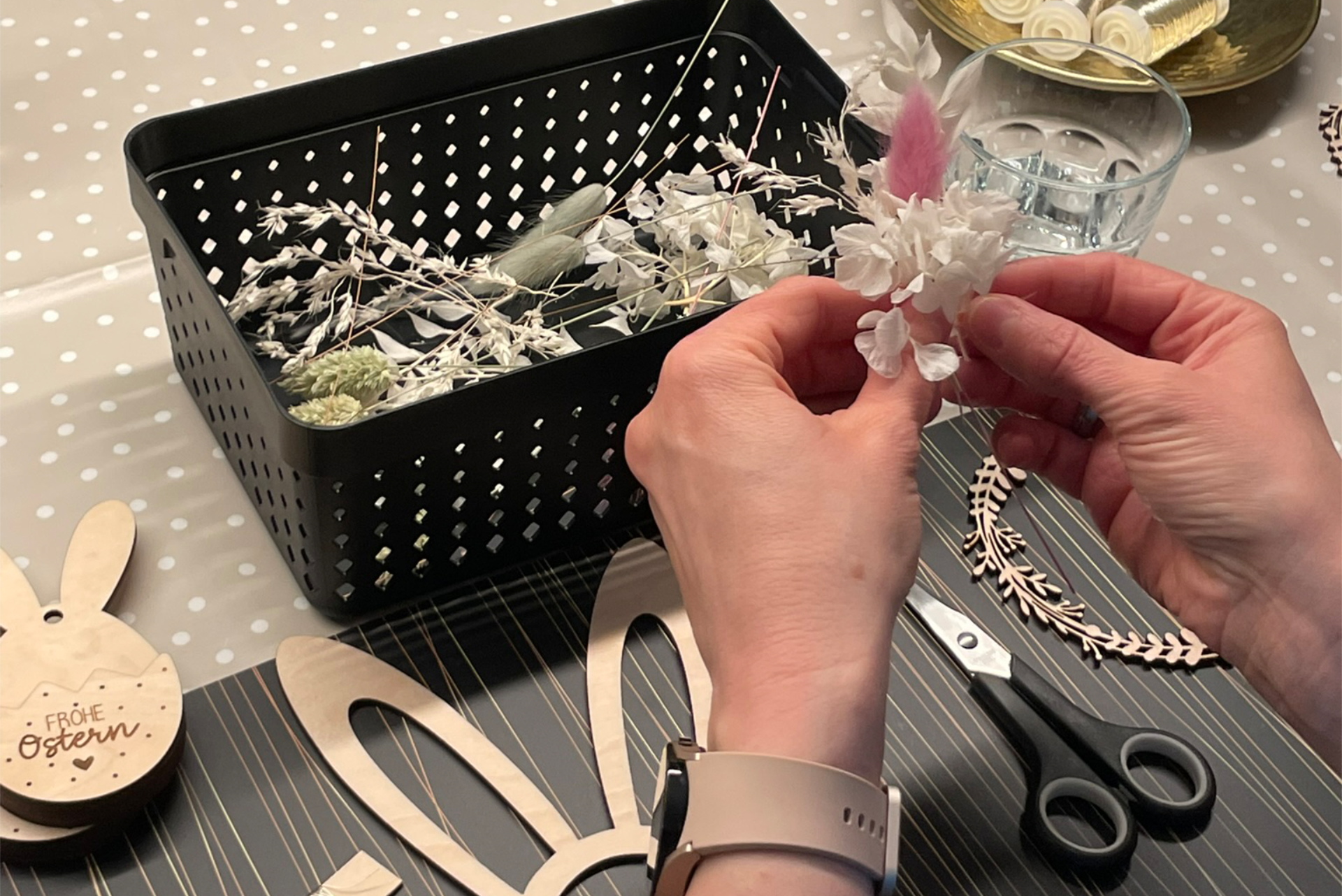 Gestalte deinen eigenen Osterkranz aus Holz und verziere ihn mit Trockenblumen, Bändern, Federn und liebevollen Details. Ob farbenfroh-fröhlich oder dezent-natürlich – dein selbstgemachtes Unikat sorgt für frühlingshafte Stimmung in deinem Zuhause.